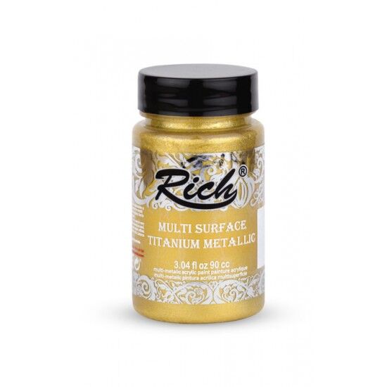Multi Surface Titanyum Metalik Boyalar, dekoratif, sanatsal ve geri dönüşüm projelerinde kullanılabilen metalik ve sedefli efekt veren çok yönlü boyalardır. Yüksek pigment yapısı sayesinde 2–3 kat uygulama ile parlak ve net bir görünüm sağlar, fırça izi bırakmaz. Ek zımpara veya yüzey hazırlığı gerektirmeden temiz ve kuru yüzeylere uygulanabilir. Parlaklığın korunması için High Gloss Vernik ile koruma önerilir.