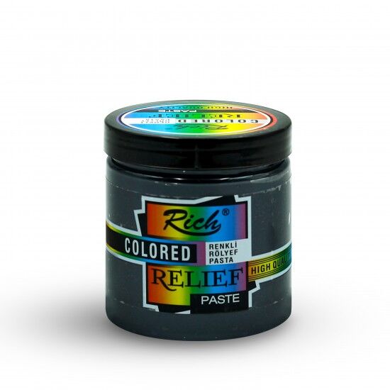 Renkli Rölyef Pasta, sanatsal ve hobi projelerinde yüzeylere boyutlu efektler kazandırmak için kullanılan, kullanıma hazır su bazlı bir pastadır. Kremsi yapısı sayesinde sert yüzeylerde kolay uygulanır ve rulo, spatula, sünger veya fırça ile farklı dokular oluşturulabilir. Ortalama 2–4 saat içinde kurur ve inceltmeden direkt kullanılabilir. Bu ürün 250 ml ambalaj ile sunulmaktadır.